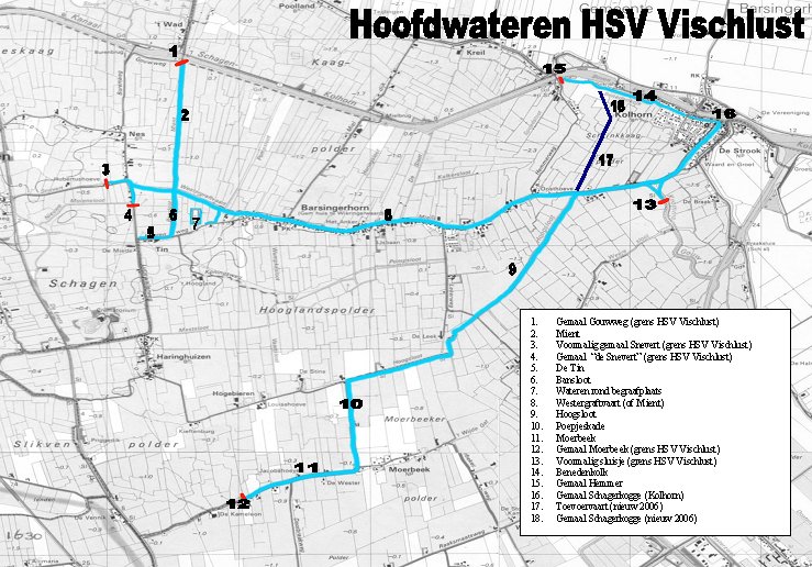 De viswateren van HSV Vischlust zijn gelegen in het gebied de Schagerkogge. De Schagerkogge is zo'n 125000 ha groot en bestaat uit een aantal polders. Denk hierbij aan o.a.de Moerbeekerpolder, Kaagpolder en Hooglandspolder. Het verenigingswater bestaat voornamelijk uit vaarten en sloten. De belangrijkste vaarten zijn: Mient, Bansloot, Westergraftvaart en de Hoogsloot. De Westergraftvaart loopt al slingerend door het dorp Barsingerhorn naar Kolhorn.
